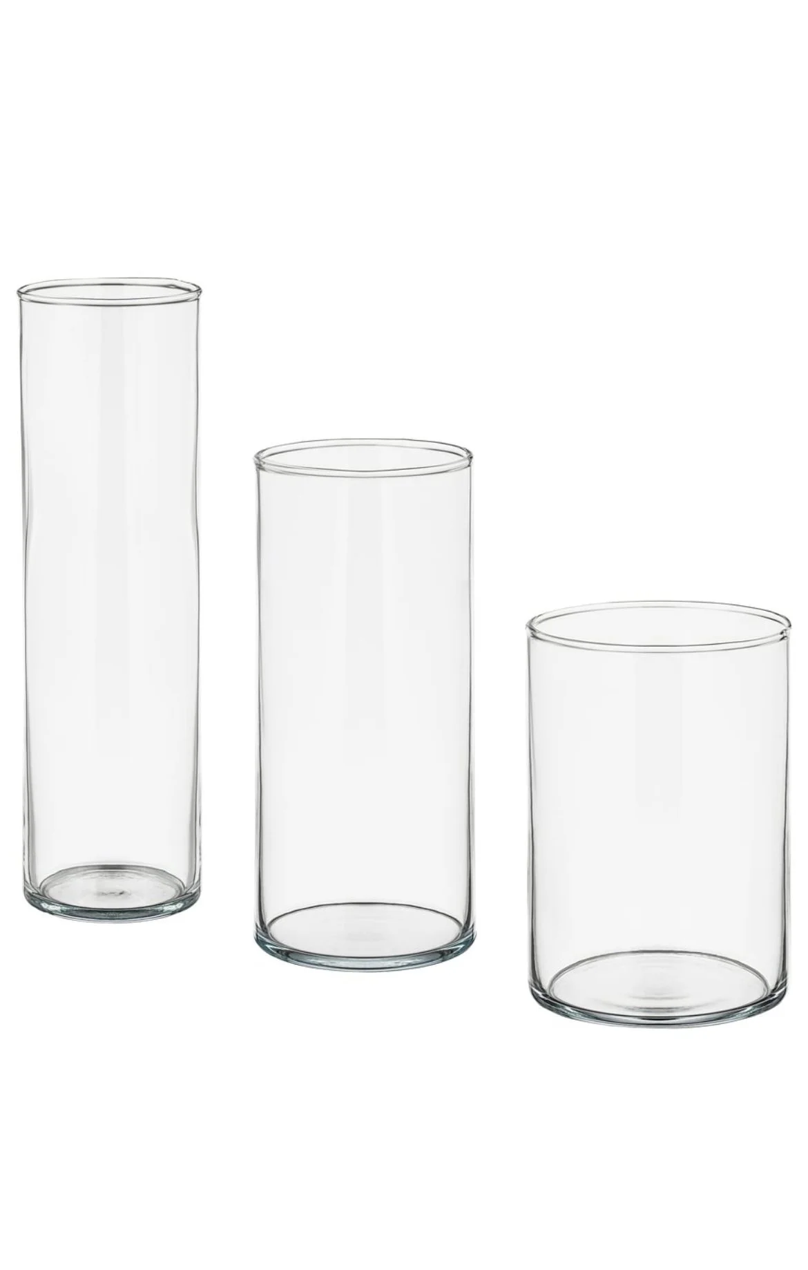 Elevate your table décor with this elegant trio of clear glass cylinder vases. Comes in three heights for versatile styling:1 vase — 11” tall × 3” diameter